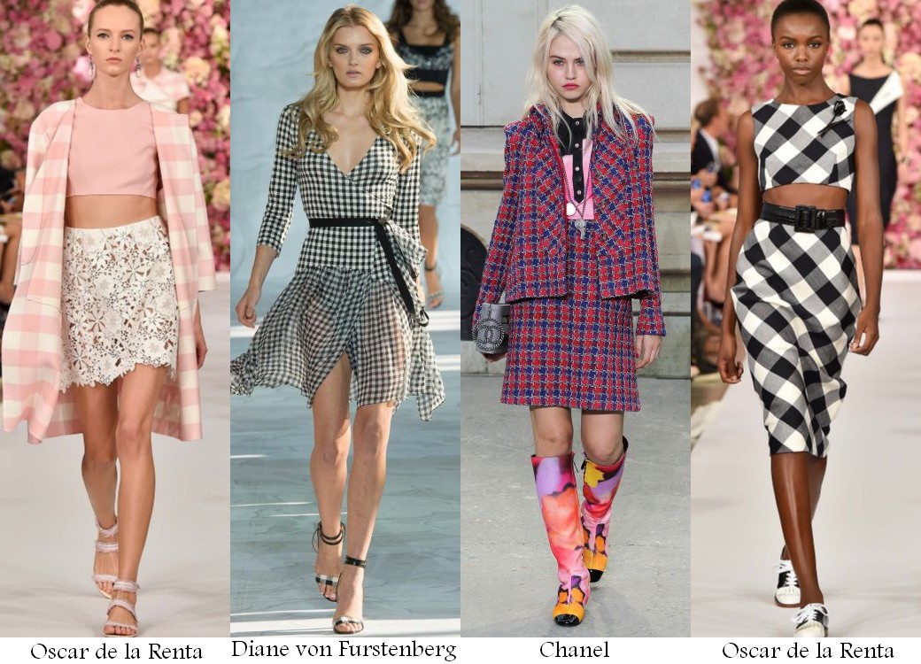 Menší či větší kostičky v různých barevných variantách jsou dalším nesmrtelným trendem, který nesmí chybět v jarní kolekci pro tento rok. Nejčastější kombinací bude jak jinak než černobílá, ale taky například bíločervená. Kostky najdete jak na šatech, tak na kostýmcích a pouzdrových sukní. Tento vzor použil zejména návrhář Oscar de la Renta, který v říjnu minulého roku zemřel, ve své poslední kolekci.